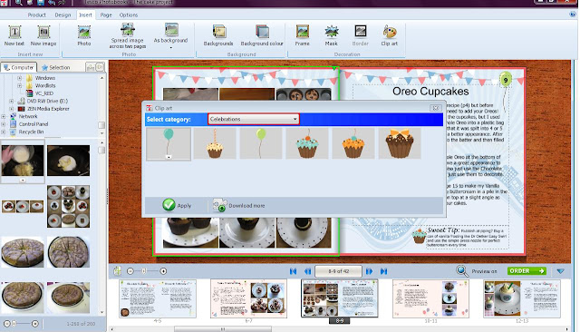 03. Then you can start to build your book. Think of a name and a theme, mine was cupcakes and desserts but you can do anything you want. All the photos used apart from on the front cover are my own cakes which I made, decorated and photographed for the book. If you haven't got enough time/patience to do that then just search for your favourite recipes online and use pictures from there.